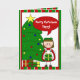 adorable holiday card featuring a christmas tree with lights, star and presents with my itty bitty girl holding a present. red text bubble can be customised with your own text and inside of the card can also be customised.