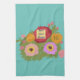 Add your photo Floral Pattern With Initial Teal Tea Towel