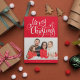 Vibrant colored letters, trees, holly and cancy canes in a cheerful message suitable for a non-religious holiday greeting. I especially liked it on the black background which made the design pop.