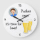Add a photo to this beer wall clock to make a funny, personalised gift for a lover of ales and lagers. It's simple to add a name and the other text can also be customised to create a fun slogan of your choice. Has a picture of a couple of tall glasses of beer, to appeal to any beer drinker, student or also ideal for Oktoberfest celebrations.