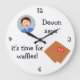 Add a photo to this breakfast themed wall clock to make a funny, personalised gift for someone who loves their morning waffles. It's simple to add a name and the other text can also be customised to create a fun slogan of your choice. The clock features an image of a couple of square waffles topped with strawberry slices -- a typical American breakfast food but also a Belgian speciality. Yummy!