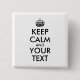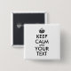 Make your own keep calm buttons with this customisable template. It has the keep calm crown logo in black and words in black letters.