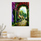 Add Your Text, Pathway with Red Mauve Flowers Poster