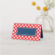 This stylish tent card features a red gingham pattern with a blue centre on the front/outside and a matching blue inside that you can remove or keep. It's a versatile place card that you can use for any event such as bbq parties, baby showers, etc.