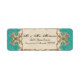 This is an elegant and sophisticated Shipping or Mailing Label. It blends the best of tradition and the freshness of the contemporary. Mixing Vintage art elements and contemporary watercolor art work hand painted by Audrey Jeanne Roberts gives a beautiful and timeless quality to this invitation. A stately Peacock rest upon elegant etched swirls and looking towards a very subtle hand painted damask with gold behind it. Also available in a custom colour version where you can put any colour where the teal is now. YOU MIGHT ALSO ENJOY: