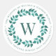 Address Monogram Wreath Teal Wedding Envelope Seal. Name and address with an elegant single initial monogram encircled by a digitally adjusted wreath of handpainted watercolor leaves. Visit our store, Austen & Grace, to view the full wedding suite, matching products and more, and please contact us if you require any assistance: contact@austenandgrace.com