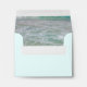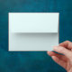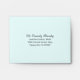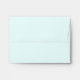 Small A2 (4x5 inches approx.) size envelopes for reply cards. A mailing name and address can be added to envelopes, which are printed in bulk - so only one set of text, which will be printed on all envelopes in the order. Individual addresses can't be used. Pale sea blue-green colour with dark grey script - for the name, and printed text for address. A beach water image decorates the inside.