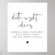 This date night bridal shower game template features an elegant calligraphy font and a modern minimalist design. Easily change the colours and edit *most* wording to meet the needs of your occasion. This sign is perfect for your contemporary, minimalist, or bohemian bridal shower or other celebration.