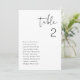 This table number seating chart features an edgy handwritten font and modern minimalist design. Easily change the number and the names along with all of the colours to fully match your event.