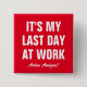 Adios Amigos Last day at work funny retirement button for employees, co-workers, boss, friend, spouse, partner, assistant, accomplice, personnel, mate, associate, pal , team, peer, buddy, manager etc. Personalised retirement buttons with custom humourous text or farewell quote. Cool pin for retiring colleague. Modern typography design. Available in custom colours. Say goodbye in style and let everyone know you are leaving the company for pension. Goodbye Tension, Hello Pension! Suitable for women and men.