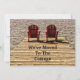 Adirondack beach chairs moving cards. Rustic country brown burgundy, red, modern, chic, trendy, unique. Personalised retirement style design. Phrase 'We've Moved To The Cottage'. Customise your typography by font size, style, colour or remove if desired. Image copyright Marg Seregelyi Photography.