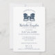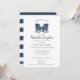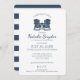 Navy blue Adirondack chairs beach themed bridal shower with blue and white stripes on back of this elegant and classic wedding shower invitation for the future bride and groom. Personalise as preferred.