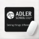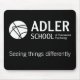Adler School mousepad with black and white logo and "Seeing things differently"