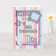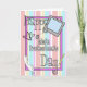 administrative professionals day greeting card with colourful stripes and office supplies design