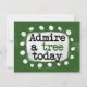 Bold text reading "Admire A Tree Today" is centred against a nature green background. The black and green text sits on a white rectangle with large textured white dots around it, providing a playful contrast against the solid colour backdrop.