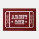 Admit One Circus Theatre Ticket Custom Colour. Show Here in Brick Red. Personalise with your own special numbers or favourite custom background colour.