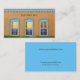 Customise this business card, from large chubby to small profile sizes available. Choose your paper style. Photography by Minerva Bloom. 3 turquoise windows with golden light reflections, against an adobe wall, Southwestern architecture.