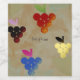 At the forefront of this artwork, four modern bunches of grapes take centre stage, each representing a different colour. A lush cluster of blue grapes exudes a sense of tranquillity and serenity. The red grapes radiate passion and vitality, while the yellow bunch symbolises the warmth of the sun, bringing joy and light. Finally, the black grapes convey depth and mystery.