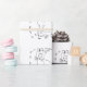 Adopt a human – cute black and white cat drawing, naive art, white linear drawing and text for cat lovers.