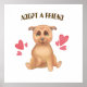 Surrounding the puppy are several vibrant pink hearts, symbolising the love and affection that await both the pet and its future owner. The hearts are strategically placed to draw attention to the puppy while also adding a touch of playfulness to the scene. The overall composition is simple yet effective, with the puppy serving as the focal point and the hearts enhancing the emotional appeal.