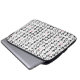 The sleeve is made of nice feeling material and seems very durable. I'm not sure how easy it'll be to clean, but the construction seems sound and the fabric is quick thick. I also like the double zipper. The printing is lovely and appears durable. The white on black contrast is nice, and the design very elegant.