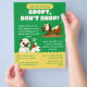 Create a community flyer to promote the idea of "Adopt, Don't Shop" dog rescue shelter. These flyers are ideal for a veterinarian, animal shelter, and pet supply stores. Featuring a colourful attractive green and yellow template with cute pets. Just add your details by clicking on the "Personalise" blue tab.