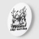Purchased this online and it got delivered quickly. It was a present for my Dads 70th birthday. He loves clocks so decided to get him one with something written on it. Battery went in and it started working straight away. Dads had no issues with it. Printing was just how it came up online.