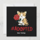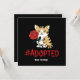 Heartwarming illustration of a happy adopted cat holding a rose, celebrating love, kindness, and giving animals a forever home.
