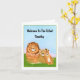 Celebrate your growing pride with this heartwarming adoption announcement card featuring a beautifully illustrated lion family in a sunny grassy field. The tender moment shows the newly adopted lion cub snuggled lovingly against its mother, symbolising the deep bond and love of family. Perfect for adoptive parents, this touching design is a meaningful way to share your joyful news with loved ones. Personalise the card with your child’s name for a custom keepsake that honours this unforgettable new chapter in your family’s journey.