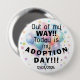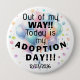 This cute and whimsical adoption day button is perfect to show off and announce to the world that today is your families Adoption Day! This design has a bundle of colorful balloons and dots in the background with the words “Out of my way today is my adoption day!” Make this day unforgettable and create everlasting memories with our customizable adoption button and add your date on the bottom. Perfect keepsake!
