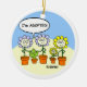 Have you adopted a child? If adoption has special meaning for your, this cute funny Christmas tree ornament featuring a cartoon depicting a happy little cactus adopted by a family of flowers might be just the thing for your tree this holiday season. Ornament depicts a happy adopted little cactus, his new parents and a jealous little flower.