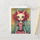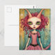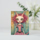 Adorable Alien Lady Mixed Media Collage Postcard