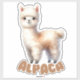 This large nursery sticker features an endearing, cartoon-style alpaca. The alpaca is depicted standing with a cheerful and gentle expression. It has fluffy, cream-coloured fur with soft brown patches, giving it a cuddly and huggable appearance. Its big, expressive eyes and rosy cheeks add to its charm. Below the alpaca, the word "ALPACA" is written in bold, playful letters, enhancing the overall friendly and inviting design suitable for a child's room.