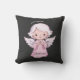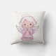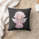 Your daughters nursery will look cute with this throw pillow cushion. Featuring an adorable pink angel with wings and a halo. The front of the pillow is black with the back in white. To change the name click on the personalise button. This design contains A.I.