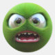 An adorable fuzzy green ball character with an angry expression