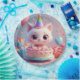 A delightful cartoon cat wearing a birthday hat sits amidst colourful balloons, wrapped gifts, and a cake topped with candles, creating a joyful and celebratory atmosphere.