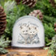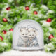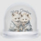 This sweet snow globe features an AI generated digital art illustration of two adorable Arctic Foxes dressed in winter garb, with customisable Christmas greeting at top.