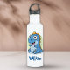 This customised, charming kids' water bottle features a cartoon baby blue dinosaur with big, expressive eyes and a joyful smile.