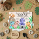 This is an adorable dinosaur themed birthday invitation for a little boy's birthday party. The illustration consists of 4 adorable baby dinosaurs with a volcano in the background and some foliage. The card can be personalised with your own details.