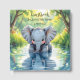 This cute baby shower guestbook has a cute watercolor cartoon chibi ai illustration of a baby elephant drinking out of a lake while looking at his own reflection. It is gender neutral, can be cute for a baby boy or girl.