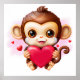 Adorable Baby Monkey Holding a Red Heart, this cute and Adorable Baby Monkey Holding a Red Heart will be a great addition to any baby nursery room or kid's room or a Valentine's day card.