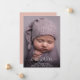 Adorable sleeping baby photo birth announcement with script name overlay, for girl or boy. Simply use this template to add your custom photo of your own sweet baby, and personalise with baby's name in the elegant trendy script typography. Soft pale lavender photo with a soft blush mauve solid colour on the back of the invitation.