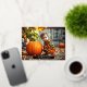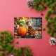This heartwarming Halloween photo card features a cute baby in a striped orange and black outfit, sitting next to a large pumpkin with the playful message "Let's Get Batty Together." The cosy autumn setting and personalised family name make this the perfect card for celebrating Halloween with loved ones. Ideal for parents looking to capture their baby's first Halloween or for families who want to send a unique and adorable greeting to friends. The festive fall colours and whimsical theme create a memorable keepsake that spreads Halloween joy with a touch of sweetness.