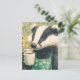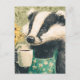 AI generated art of an adorable badger with a floral apron holding a cup of coffee