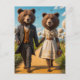 An adorable bear couple wearing human clothing takes a walk through the park funny AI generated painting