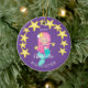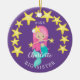 Personalise & dated cute big sister mermaid Christmas Ornament framed with starfish set on a purple background.