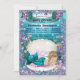 Blonde mermaid baby shower invitation with adorable light hair blonde mermaid princess with diamond tiara on a pretty pearl draped clam shell on a beautiful teal blue and purple under sea background. You can easily customise this beautiful mermaid baby shower invitation for your event by simply adding your details. This is a printed design with no real glitter, jewels, bows, etc.