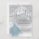 Adorable blue dress silver glittery drips ombre in invitation
