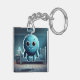This design features a cute and fluffy blue creature with big round eyes, glowing slightly under a soft night lamp. The creature sits playfully on the edge of a bed, bringing a sense of comfort and whimsy to any room. Perfect for anyone who loves adorable, friendly monster designs, making it an excellent addition to home décor or fun apparel.