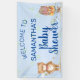 Celebrate your baby's arrival by spending time with friends and family and welcome them with this cute woodland bear baby shower welcome banner for a baby boy. A soft blue background with watercolor flowers accents two sweet watercolor teddy bears holding a flower. Trendy script in blue completes this forest animal design.